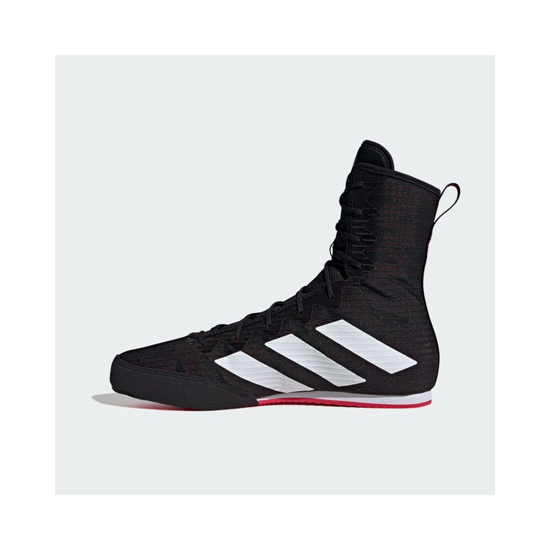 Tried and trusted. No stranger to the gym or the ring, adidas Box Hog boxing shoes keep your intensity high thanks to their breathable mesh upper and inner reinforcements. A die-cut EVA midsole wedge supports your midfoot for a stable stance. Underneath, the multidirectional outsole grips the mat for lightning-quick footwork. Made with a series of recycled materials, this upper features at least 50% recycled content. This product represents just one of our solutions to help end plastic waste.