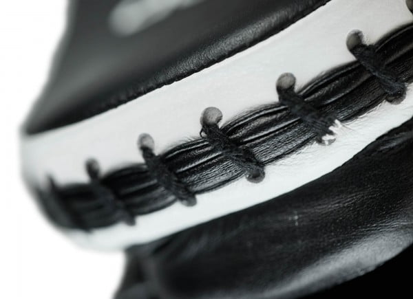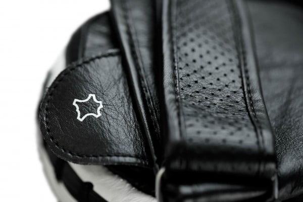 Constructed of buffalo leather. Perforated leather finger shield. Padded wrist with hook and loop strap closure. Pre-curved high density multi layered foam padding with contour pad.