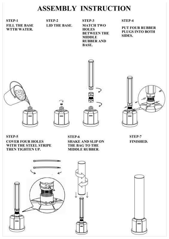 - Empty Flexible base fulfill with water (85kg/187 lbs) 0r with sand (130kg / 286 lbs)